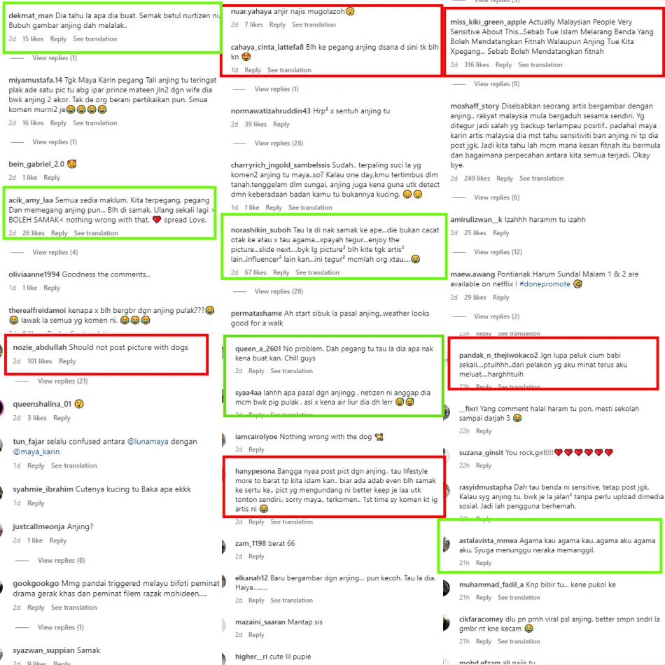 It’s clear that the “Pontianak Harum Sundal Malam” star just wanted to share the highlight of her day with the filmmaker and his pets. Sadly, many of her fans were not too keen on the idea that their idol being the one walking the dogs. As seen in the screenshots below, netizens bombarded the celeb’s post with comments to remind her that she should not be touching dogs while others advised her to avoid posting anything that’s deemed too sensitive as it would bring slander.