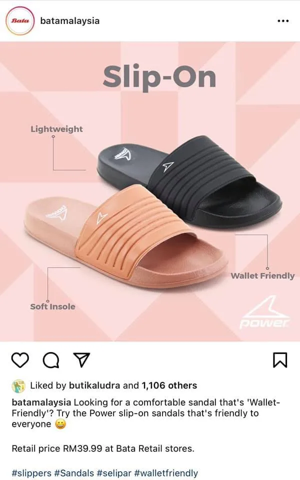 “Looking for a comfortable sandal that’s ‘Wallet-Friendly’? Try the Power slip-on sandals that’s friendly to everyone ?,” they wrote on the caption. For those curious, the slippers are priced at only RM39.90 per pair.