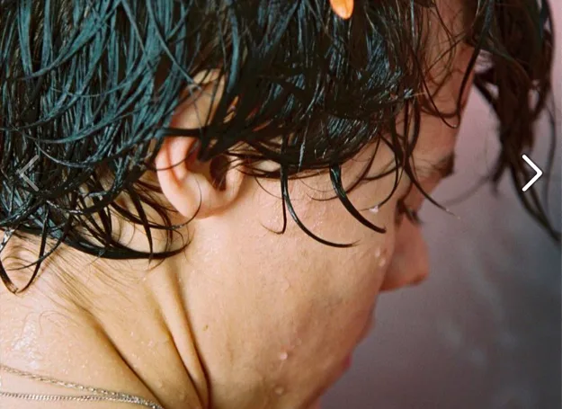 The front cover of Styles’ self-titled album shows the singer baring his naked back to the camera. His body is submerged in a cotton-candy pink bath but his tattoos and delicate jewellery are still visible.