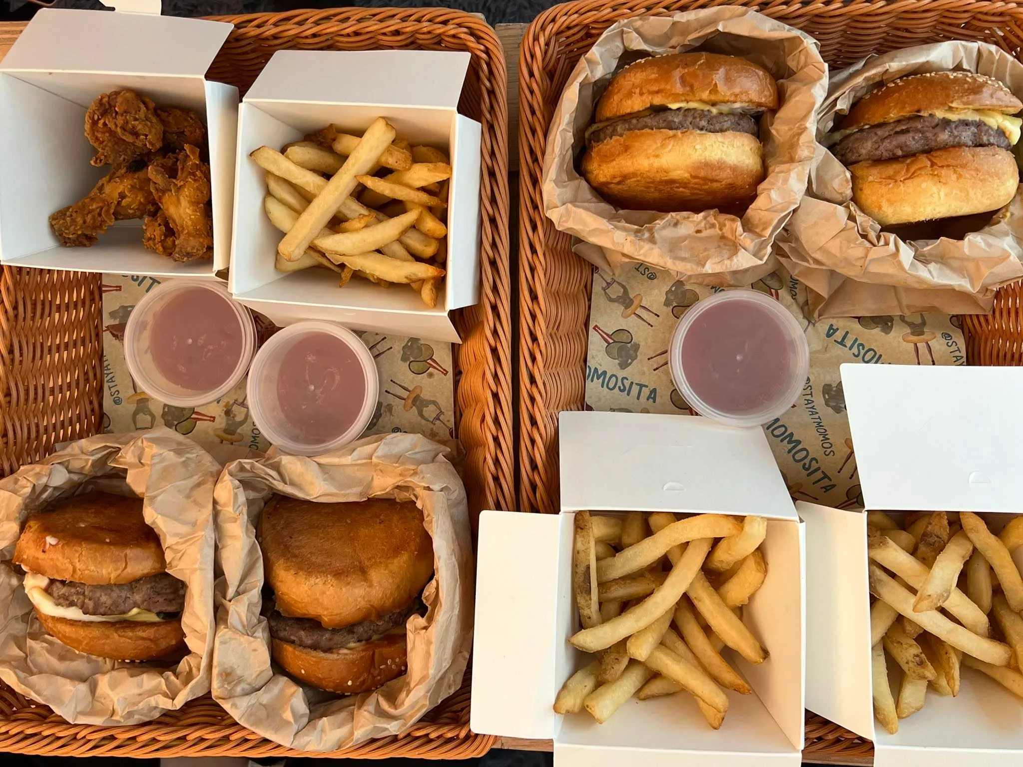 - Choices of sides (fries, wings, spiced popcorn chicken)