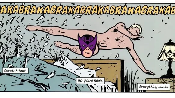 In the source material, Clint Barton has gone solo. He’s taken his life away from the bustle and glamour of Earth’s Mightiest Heroes. There’s no alien invasion. Ultron is not taking over the universe. There is no demon tearing through the streets. The main focus is on the life, the street-level stuff, that Clint goes through; the ups-and-downs of a hero and whatever else comes along with that ride. It’s a more grounded take on what the archer has been considering the fact that he’s led a variation of the Avengers at one point.