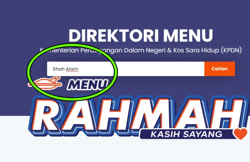 Go to the official Menu Rahmah website at menurahmah.kpdn.gov.my.
