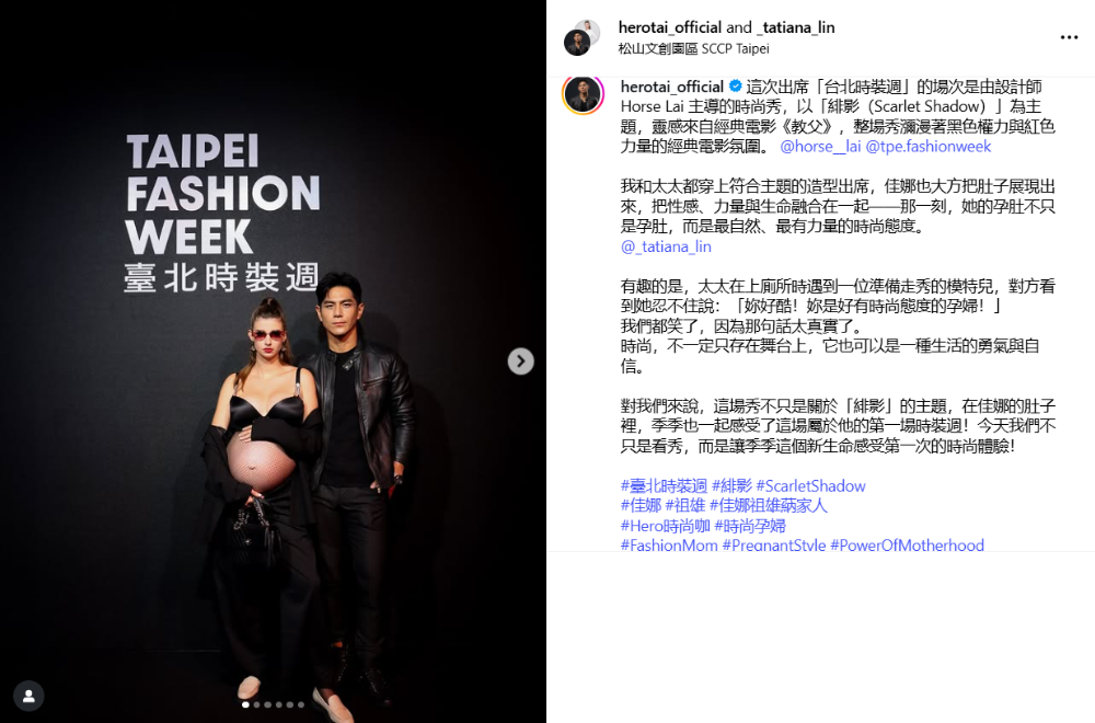Hero and Tatiana recently attended Taipei Fashion Week with their bold and daring looks. After the event, the actor took to social media to detail an awkward interaction with a fan they met at the show. Hero explained that during the event, he and his wife met an enthusiastic fan who approached them for a photo opportunity. However, after taking the photo, the fan then asked to touch Tatiana’s pregnant belly.