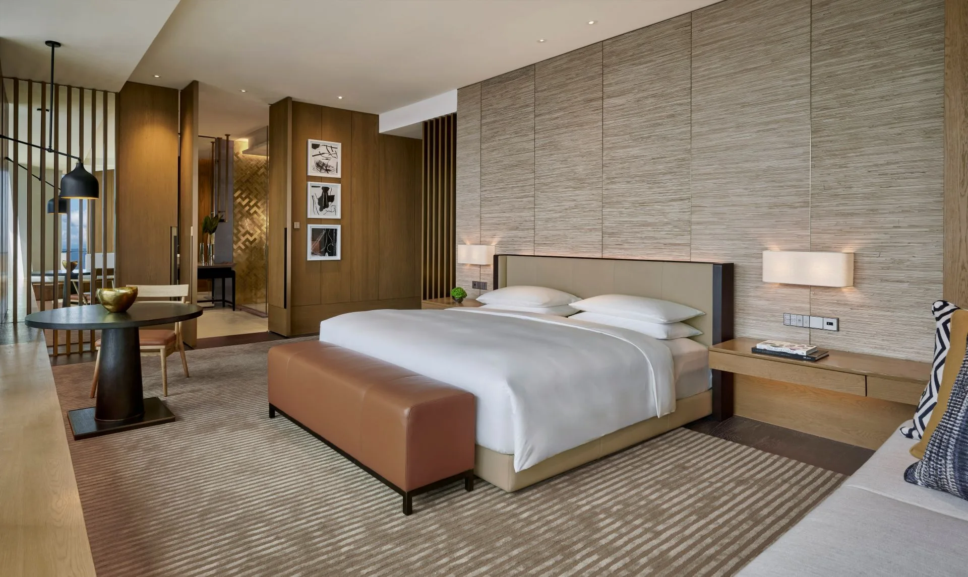 Thoughtfully designed for both relaxation and inspiration, the suites feature expansive living areas, a full bath with a separate rain shower and aromatherapy shower steamer, double vanity, a walk-in dressing room, personal study area, and in select rooms, private dining spaces overlooking the cityscape.