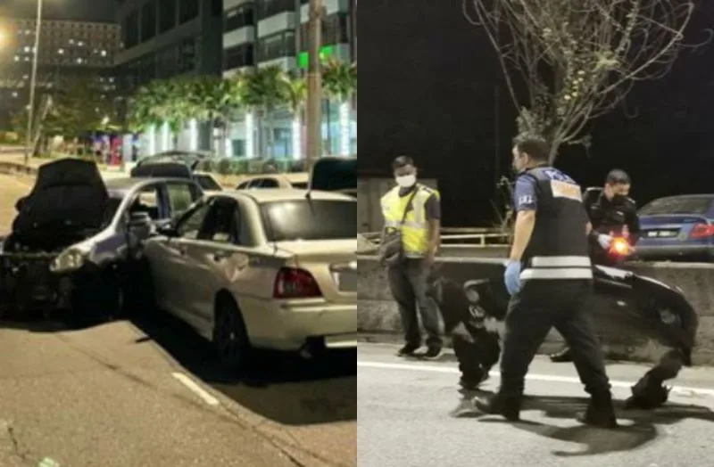 The incident took place in Taman Len Seng, Cheras at 10:45pm on 25th May. According to Cheras police chief Assistant Commissioner Mohamed Mokhsein Mohamed Zon, a police team was on patrol when they spotted a parked Perodua Myvi car at Cheras Sentral. The car drew red flags as the couple inside were acting suspiciously. When they approached the car for inspection, the driver of the Myvi rammed the car into the patrol vehicle to make his escape.