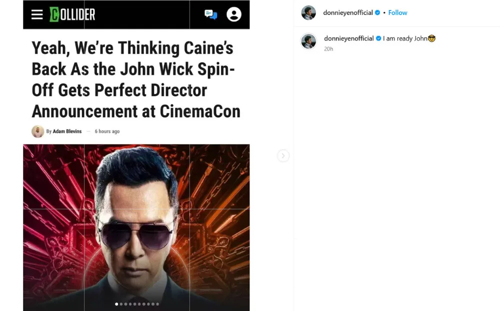 Adam also praised the Hong Kong filmmaker, saying, “Donnie is not only an incredible, charismatic star, but a smart, cinematic director who knows how to deliver massively entertaining action for a global audience. We’re thrilled that he’s in the director’s chair to tell Caine’s story.”. The man behind the character is equally thrilled, sharing the news on Instagram with the captions, “I am ready John”.