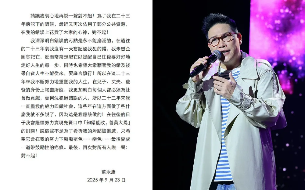 Earlier this month, the organiser for William So’s Wenzhou concert announced that the show had been cancelled. The sold-out concert was scheduled for 6th October 2025. The reason for the cancellation was complaints from netizens who learnt about the singer’s past drug case. In 2002, William was arrested at a Taipei pub for drug possession. He was then sentenced to compulsory rehabilitation and served 11 days in jail.