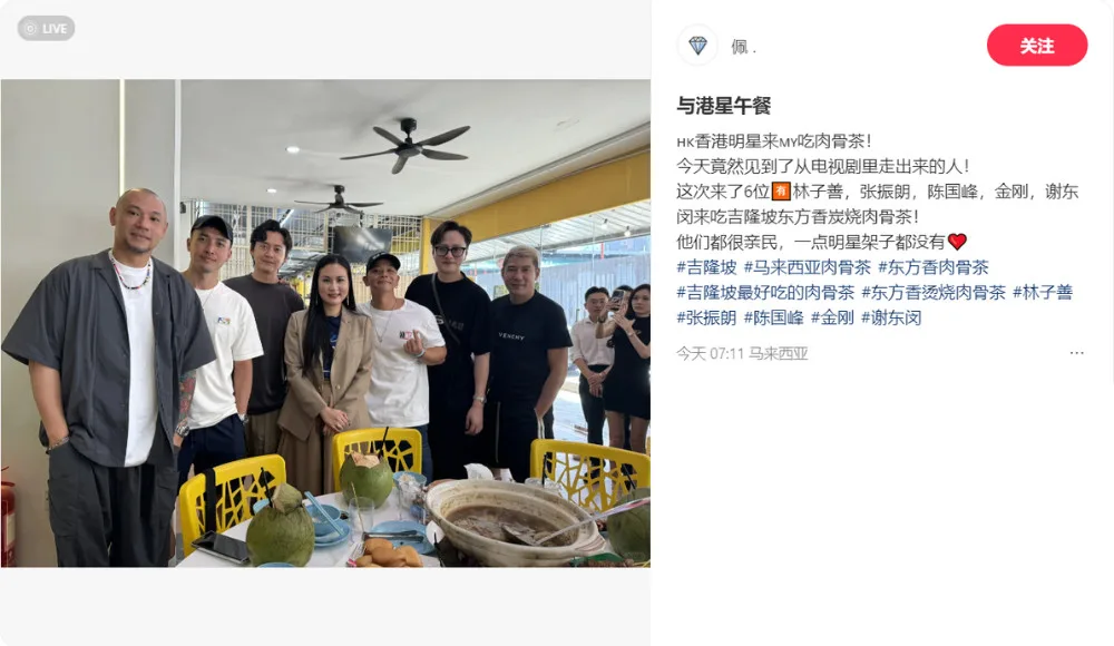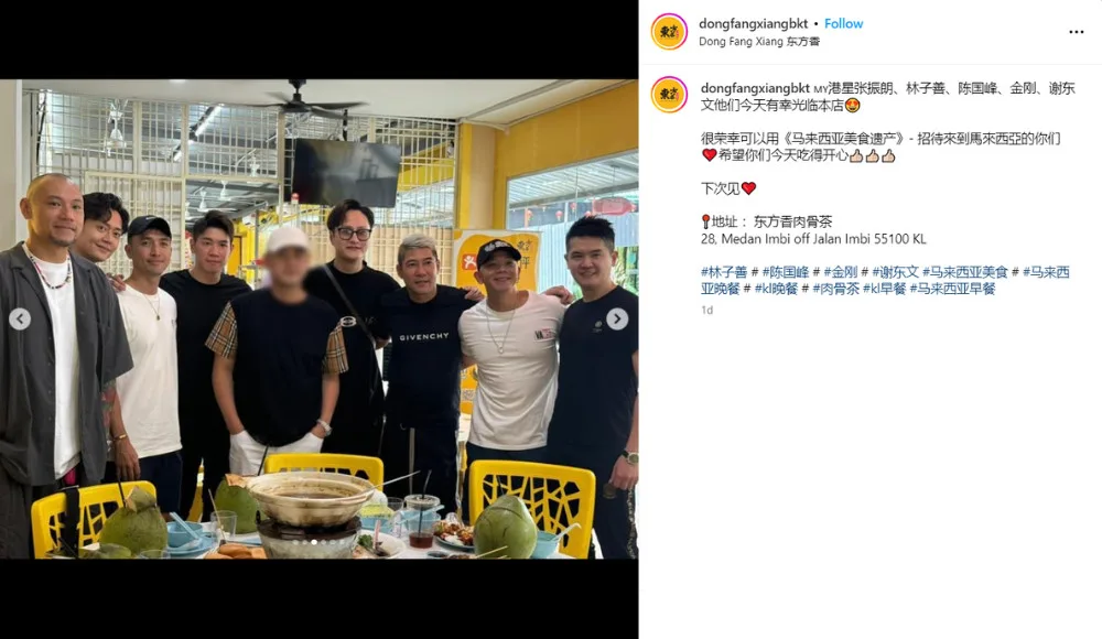 According to a fan, she happened to chance upon the group earlier this week while dining at a bak kut teh restaurant in KL, later revealed as the Dong Fang Xiang Bak Kut Teh restaurant at Jalan Imbi. In her post, the fan wrote, “I didn’t expect to meet Brian Tse, Owen Cheung, King Kong Lee, Penny Chan and Jazz Lam. How could I be so lucky to meet so many stars in one day?”.