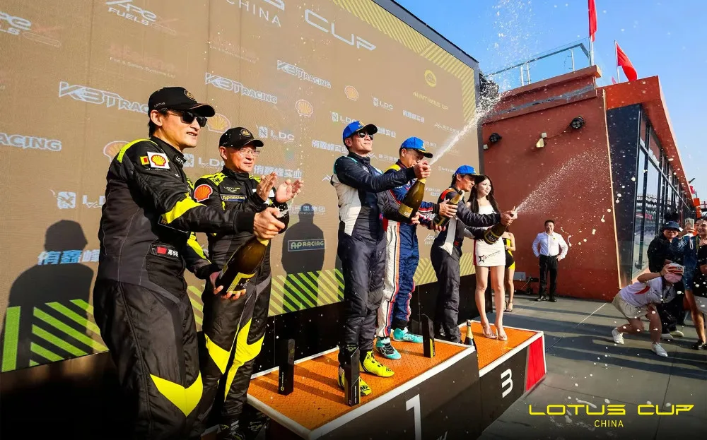 Taking the wheel of the bright pink No.88 Lotus EMIRA Cup car, Aaron surprised the crowd with his racing skills. The star won his first race, taking home the Masters Class cup. In true racing spirit, Aaron and his team celebrated by popping some champagne on the podium. Sadly, the H-Star Racing team didn’t fare well in the second round, but they still managed to finish in a respectable seventh place.