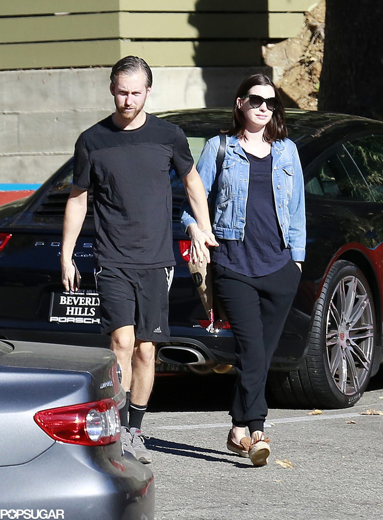 Over the weekend, Hathaway and Shulman were spotted heading out for breakfast in Los Angeles (LA). The actress made no effort to hide her tiny baby bump while wearing a navy top, a denim jacket, and comfy black pants.