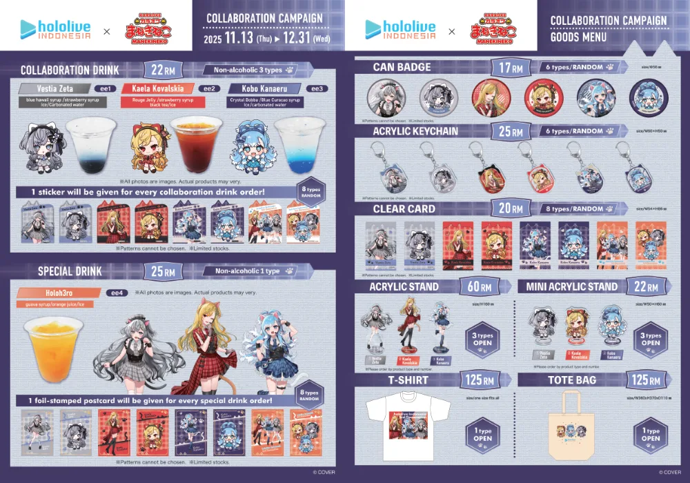 Attendees will receive limited ticket-style commemorative cards, available only to those who participate in the watch party, while stocks last. At the same time, the Hololive Indonesia 3rd Generation holoh3ro × Karaoke Manekineko collaboration is still ongoing until 31st December, with exclusive collaboration drinks and limited exclusive goods available.