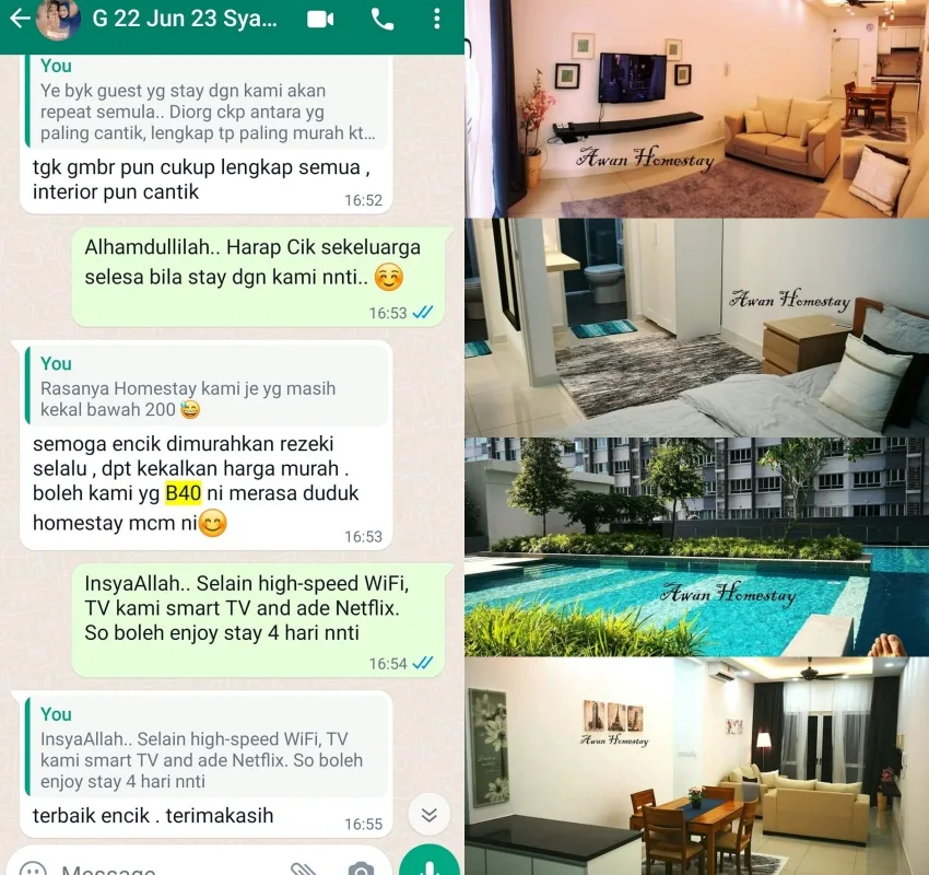 From the photos he shared of his homestay apartment unit, it definitely looks like guests are getting more than what they’re paying for. The homeowner even shared a screenshot of a positive review left by a previous guest. Judging by the message, the low price was probably offered so that those in the B40 category will also be able to afford it.