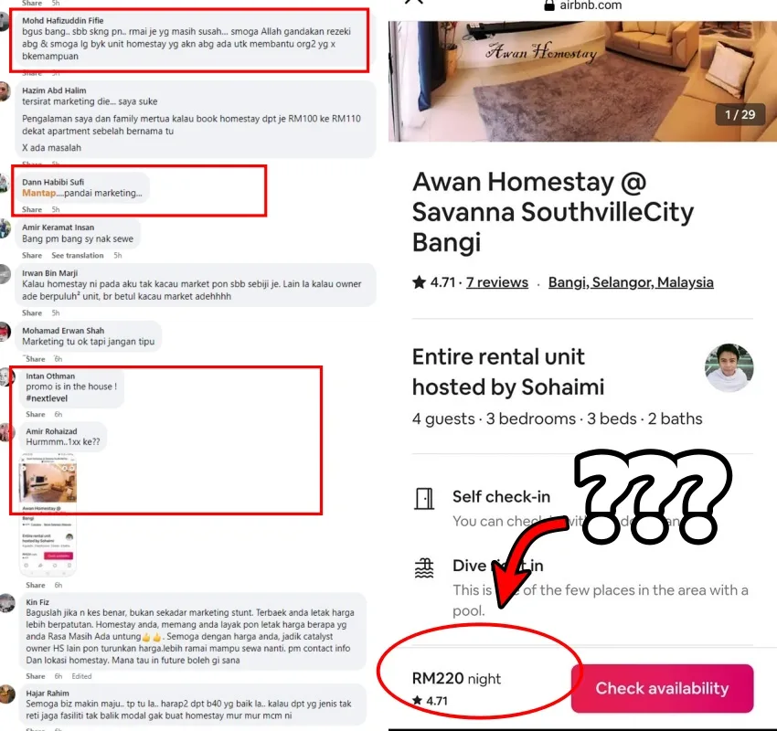 Many netizens showed their support for Sohaimi’s decision and generosity while others complimented him on the idea of posting his story as a marketing strategy so that people will check out his homestay. Some have also claimed that he was lying after finding out that his homestay actually cost over RM200 on the Airbnb app, as seen in the screenshots below.