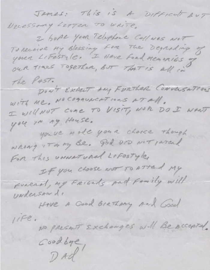 Going by Reddit (a popular social news site) handle, “RegBarc”, James posted up a letter that was sent by his dad a week after that fateful phone call. The content of the letter was viewed by nearly 800,000 people across the world – and counting. In the handwritten letter, James’ father bluntly degraded him for his “unnatural” lifestyle.