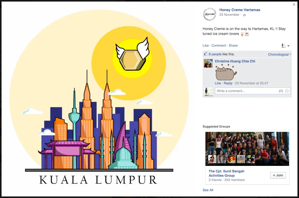 - First 100 to check-in to Honey Crème Hartamas on Facebook on 19th December will receive a free ice-cream