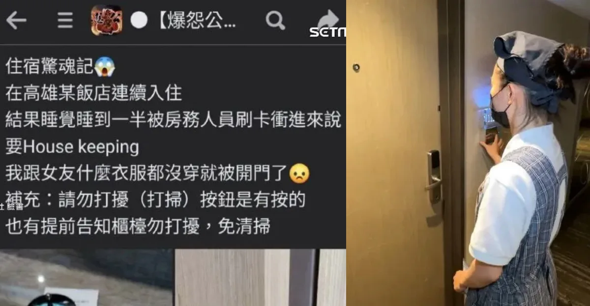 The complaint first popped up on Facebook via a group. According to the poster, he and his girlfriend had opted to stay at a four-star hotel in Kaohsiung when the incident occurred. They had been half asleep and naked in bed when their room was broken into by a housekeeper.