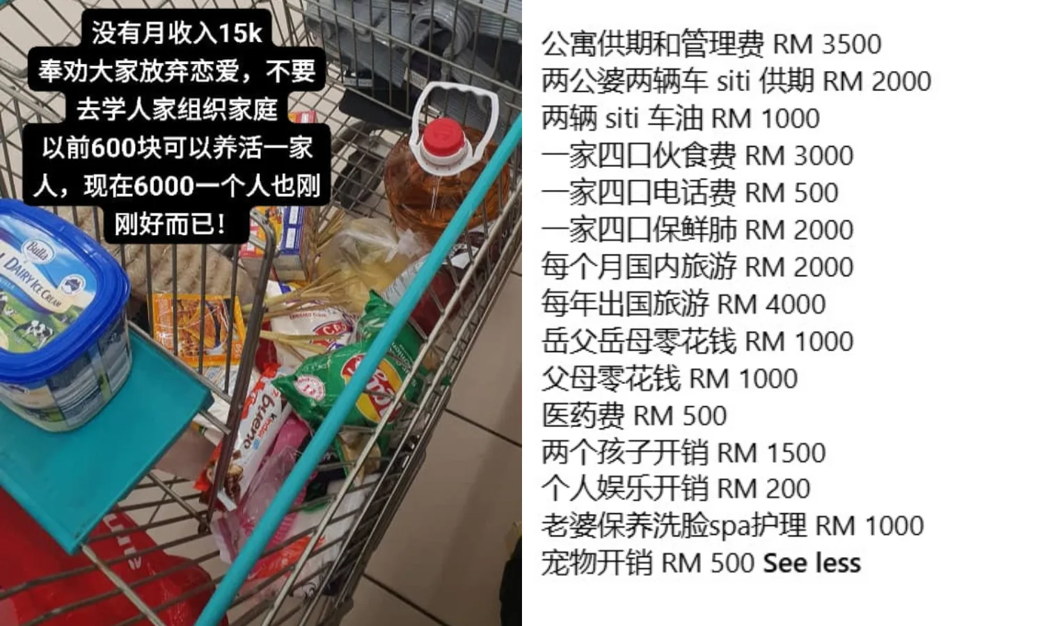 The local man’s calculations add up to almost RM24k, and netizens criticised his estimate. A few agreed that without the money, you won’t be happy. Others thought it was a bit harsh to tell youngsters to not fall in love and waste a woman’s time without a stable income.
