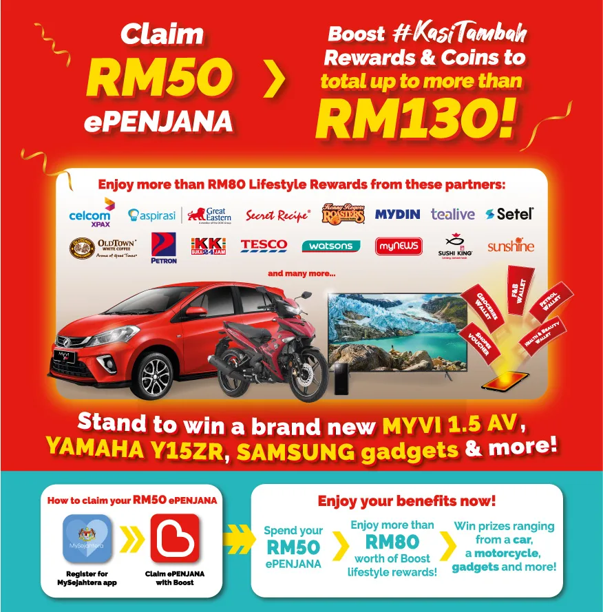 Downloaded the MySejahtera app? Good, you can now redeem your ePENJANA free RM50 eWallet credit from either Boost, GrabPay or Touch ‘n Go eWallet.