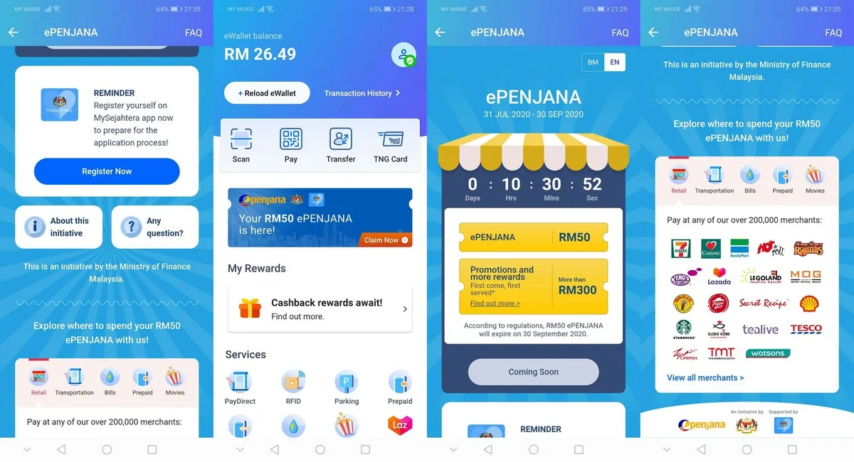 The RM50 is similar to eTunai Rakyat. Do note that you won’t be allowed to withdraw or transfer the ePenjana credit to another user. You have until 30th September 2020 to fully utilise the credit before it expires.