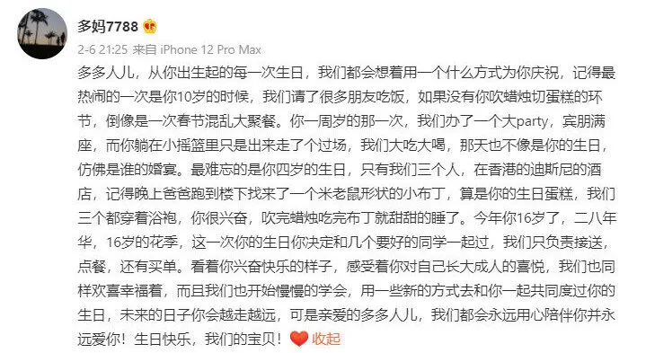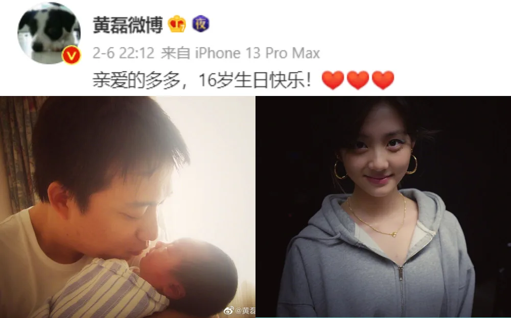 Christine’s parents expressed their love for their daughter in different ways, but both equally sincere. Huang Lei’s birthday post on Weibo was short and sweet. He wished her a happy sixteenth birthday and added two photos of Christine. One of her when she was just a baby and another of her now, at sixteen.