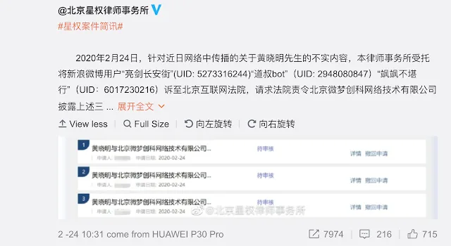 The actor-singer also shared that his lawyer will be taking legal action towards the slanderers responsible for spreading the false rumours. 3 specific user IDs have already been listed down. The firm has issued a request to Weibo’s company via the Beijing courts to disclose the real identities of the aforementioned trio in order to press charges.