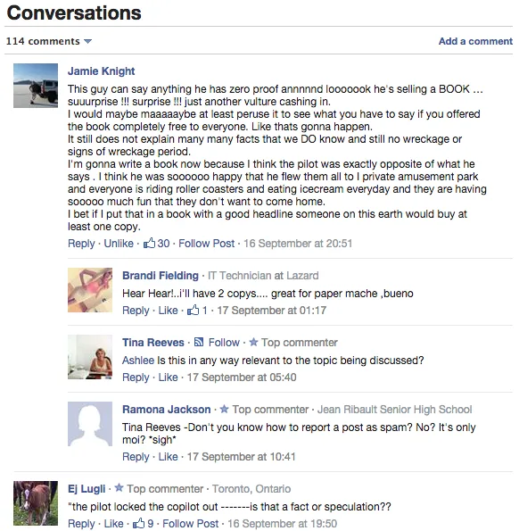The 16th September article quoted a Birmingham Mail report citing claims made by Kiwi Airlines founder and New Zealand air accident investigator Ewan Wilson. Wilson had claimed that it was likely Zaharie was mentally ill, and that he had killed everyone on the flight when he committed suicide on 8th March.