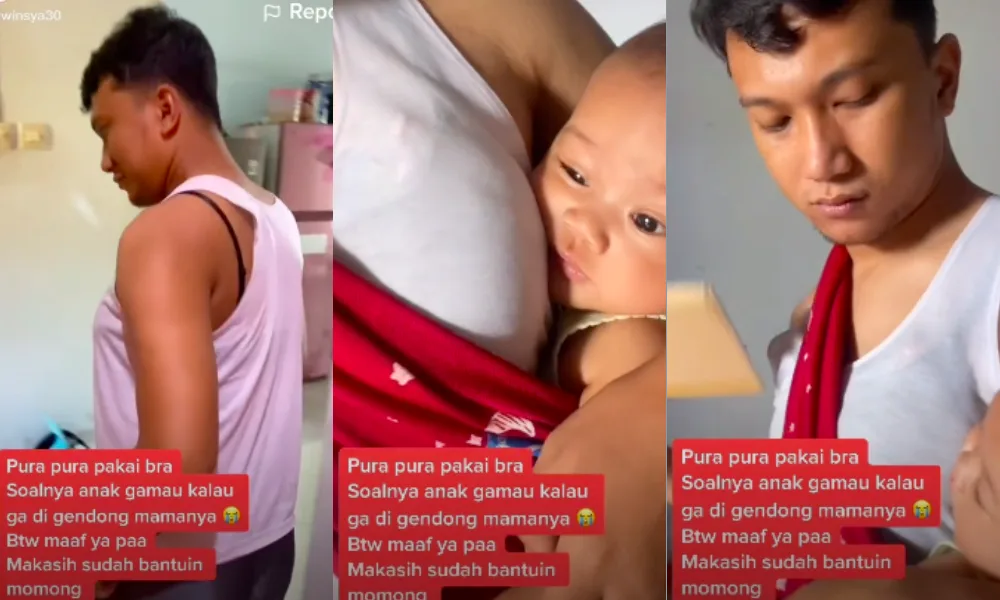 A man from Indonesia has gone viral on TikTok this week for his “creative” way in helping to take care of his baby daughter when the mother isn’t around. As seen in the video, the father literally had to put on his wife’s undergarment in order to stop the clingy child from crying!