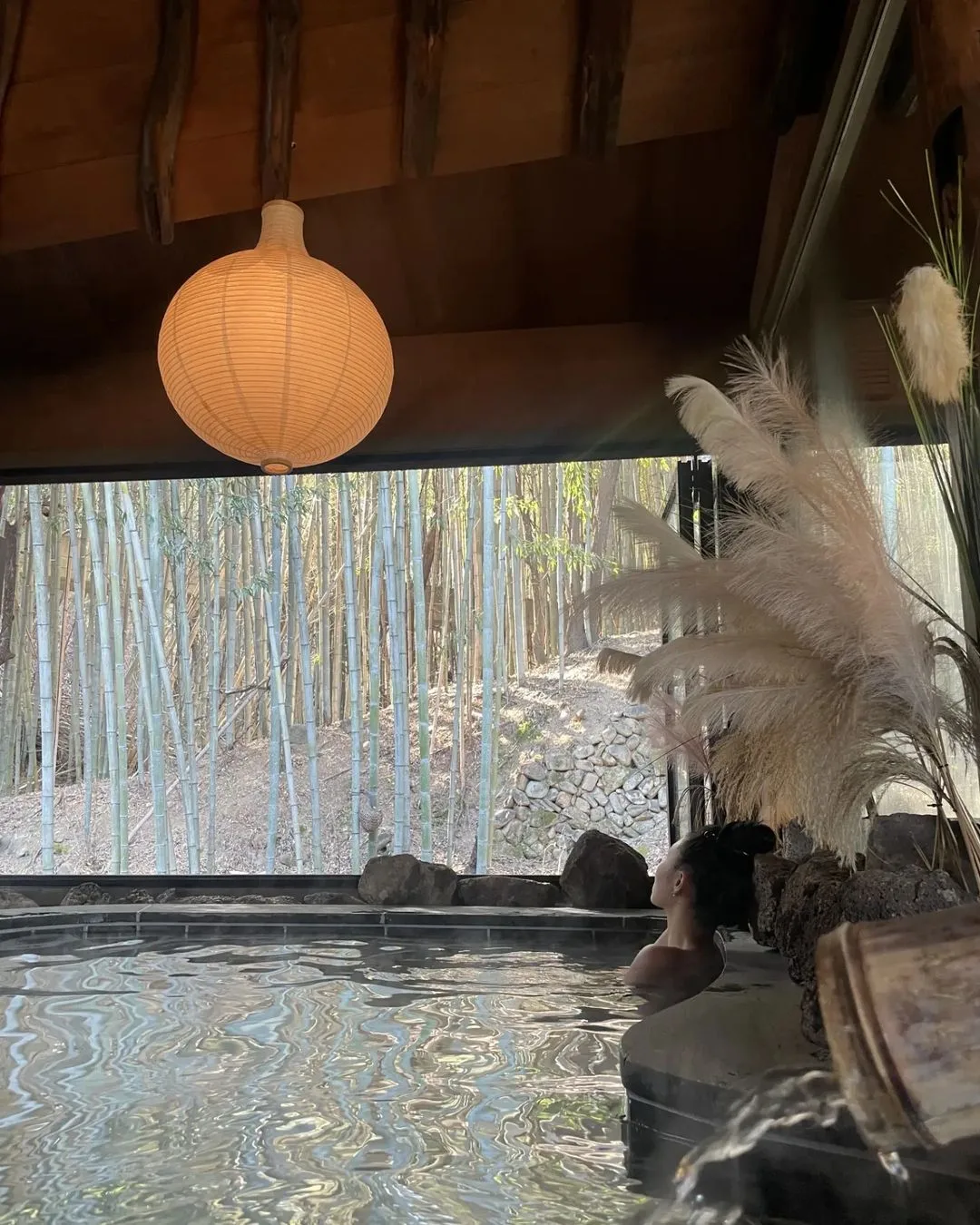 The Mamamoo vixen took to her Instagram to share some exotic pics from her vacation trip over the weekend. A few of the snap shots shows Hwasa taking a dip inside a relaxing, luxurious bath with a stunning view of the bamboo forest.