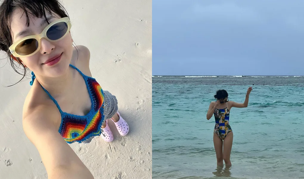 Meanwhile, Seulgi from Red Velvet also posted some snapshots during her holiday trip. The singer donned a crochet top and shorts. In the same posting, the “Russian Roulette” star can be seen looking absolutely magnificent in a one-piece printed swimsuit, matching nail arts, and yellow sunglasses, boasting a chic and sexy vibe.