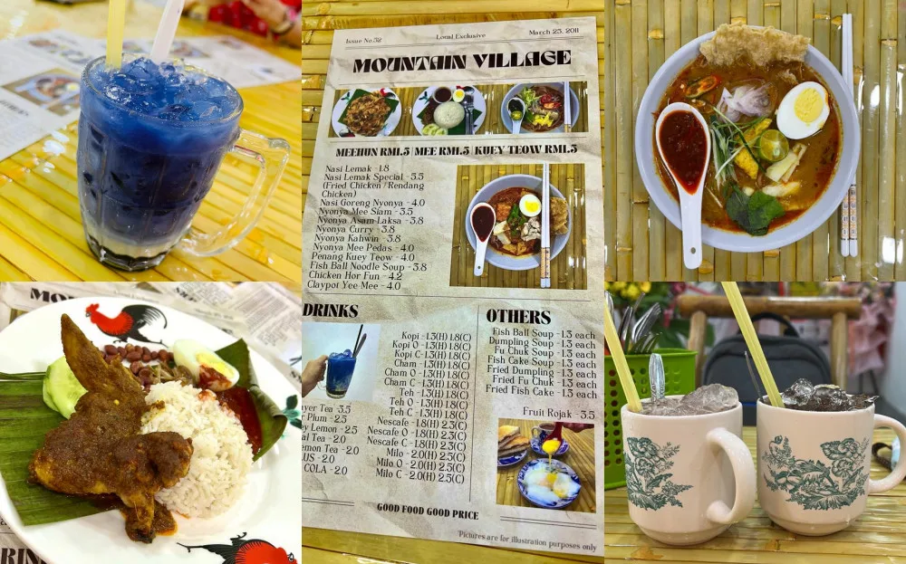 Their signature 3-layer tea (RM3.50) is also to die for! Unlike the overly-sweet variations you tend to get from other kopitiams and restaurants, Mountain Village makes a lovely blend that brings out all the layers without giving you diabetes. They also offer a range of drinks for as low as RM1.80, with all the instant classics like Milo and Kopi O available.