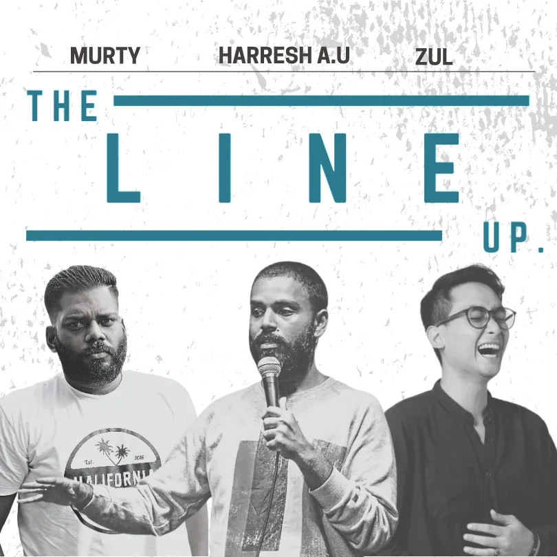 The Line Up is a brand that is run by rising comedians Harresh A.U, Murty and Zul and their shows happen every month but catch their upcoming show this Friday to laugh your stress away.