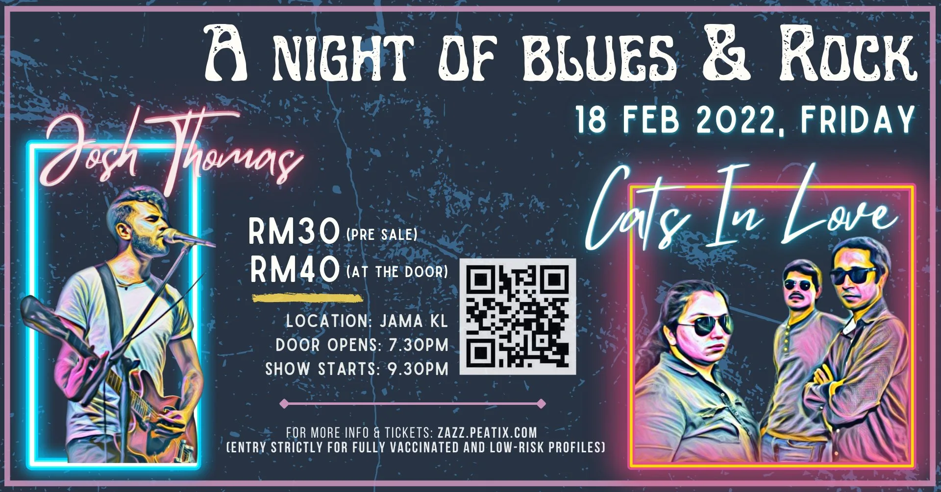 If you’re itching to attend a live music gig, then this one is absolutely for you! Have a chill night with the blues session played by Josh Thomas, and sweat it out in a rock ‘n’ roll gig at the end of the night with Cats in Love.