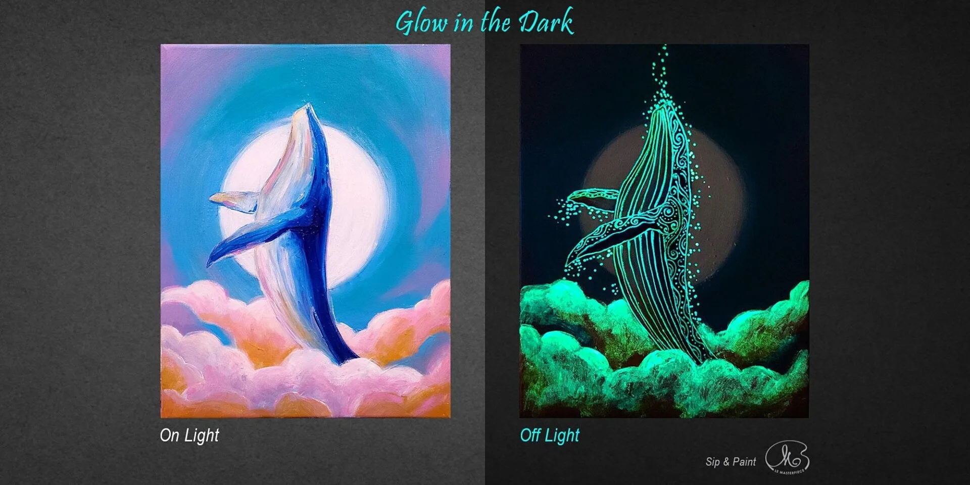 We’re here this week again with another event from Sip and Paint for you. This time, they’re bringing back their glow in the dark session with a whale being the main subject of your drawing. Time to get your inner glow on, people!