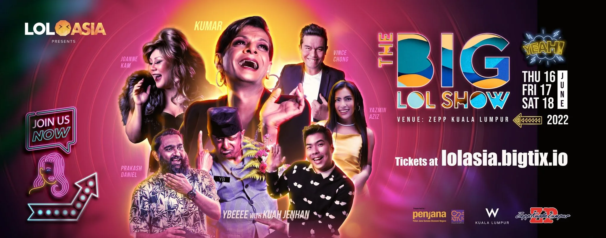 The big LOL show returns with the heavyweights of Asian comedy variety! Featuring Kumar, Joanne Kam, Jo Kukathas, Kuah Jenhan, Vince Chong, Prakash Daniel and Yazmin Aziz, The Big LOL Show promises a roaring good time to the audience with a gathering of the best Asians comedy could offer.