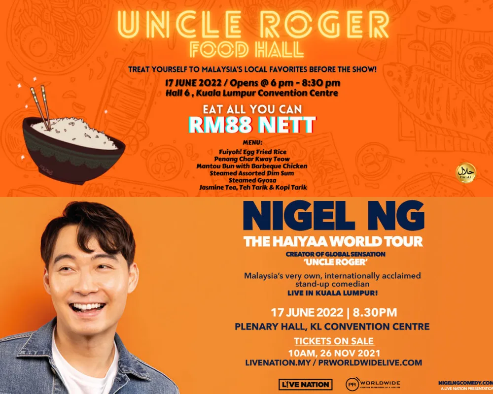 ‘Haiyaa’ goes global! Live Nation Malaysia and PR Worldwide are excited to announce Nigel Ng’s The Haiyaa World Tour Live in Kuala Lumpur The creator of viral global sensation ‘Uncle Roger’ and host of podcast sensation ‘Rice To Meet You Ng’.