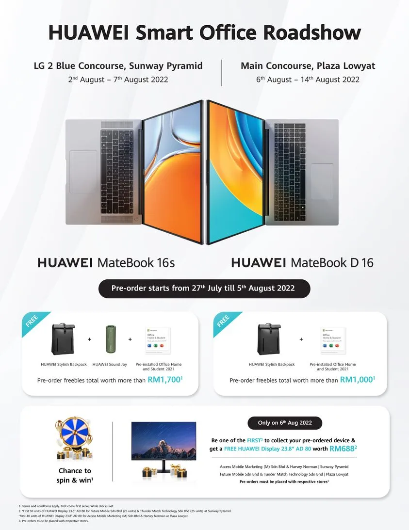 Tech geeks, get ready to witness the latest technological advancement HUAWEI has to offer— the HUAWEI MateBook D16 and MateBook 16s! Both are available for pre-order until 5th August, along with freebies, such as the HUAWEI Stylish Backpack and other goodies worth more than RM1,000 and RM 1,700.