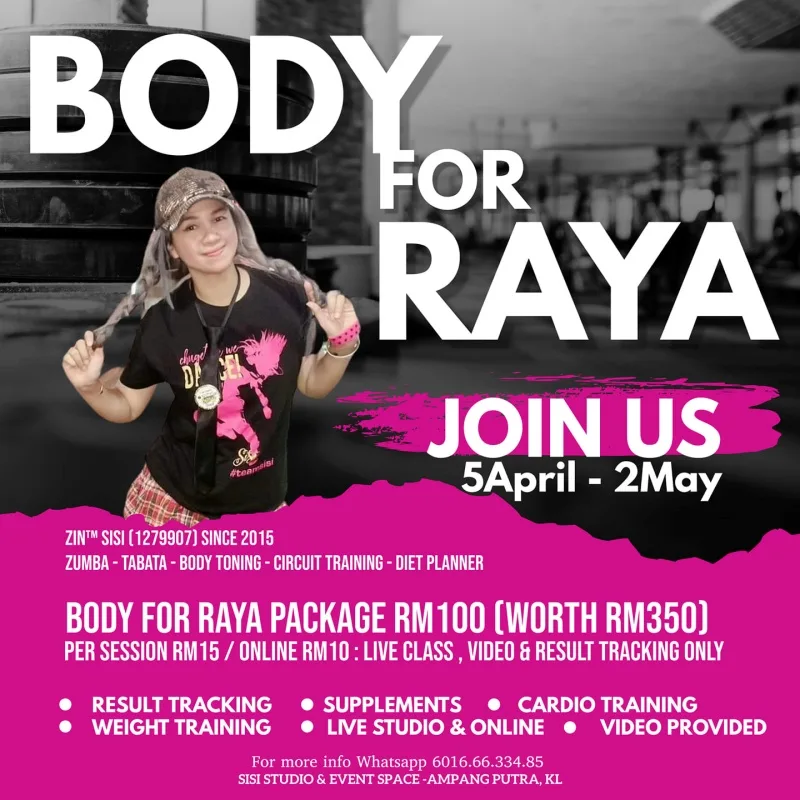 Planning to get in shape for Raya? How about joining Body For Raya for a little work out after iftar. Even if you’re not there to work up a sweat, you can still have some fun dancing by joining the zumba class.