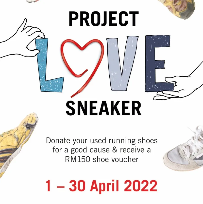 Project Love Sneaker is a shoe-donation drive organised by Running Lab Malaysia to serve the running community’s desire to recycle their “retired” running shoes for a good cause. Simply drop off your preloved running shoes at any Running Lab store from 1st – 30th April and you get a RM150 Running Lab shoe voucher for every pair of preloved running shoes you donate in good condition.