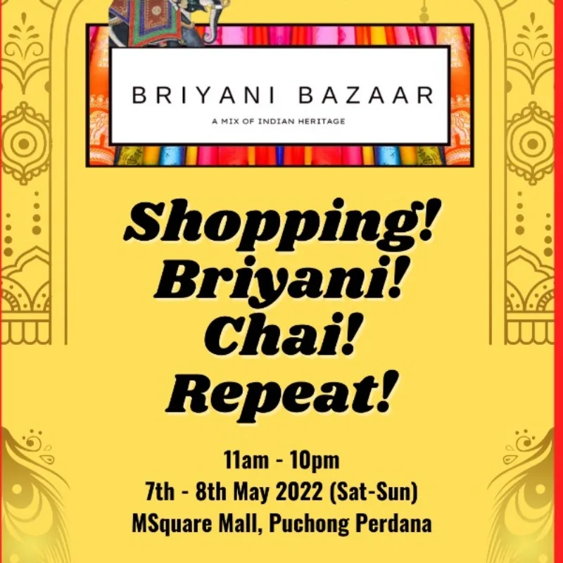 Shopping, Briyani, Chai and Repeat! While Ramadan bazaars are over, Raya bazaars are just getting started! Your presence is what they are asking for to make Briyani Bazaar a memorable one. Check it out and have lots of fun and enjoyment!
