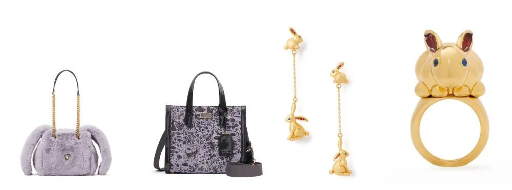 Kate Spade rings in the Year of the Rabbit with a capsule collection specially minted for the celebration by kate spade new york. The collection includes a Small Chain Faux Fur Purple Rabbit Bucket Bag and a Manhattan Year of The Rabbit Embellished Toile Floral Jacquard Small Tote Bag. The iconic Manhattan Tote is in an inspired exclusive toile pattern with small bunnies subtly featured in the print. Accessories for the season include items for those who are looking for rabbit silhouette jewellery, such as the Year of the Rabbit Drop Earrings, the Year of the Rabbit Studs and the Year of the Rabbit Huggies.