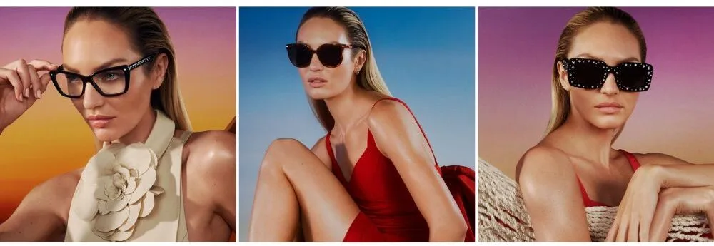 The collection includes a complete offer of sunglasses and optical frames, comprising proposals in acetate and metal or perfect combinations of both materials, ranging from squared to butterfly or cat-eye shapes, personalized by a shiny tag with the iconic red monogram logo or by a round 3D insert with monogram on the temple tips.