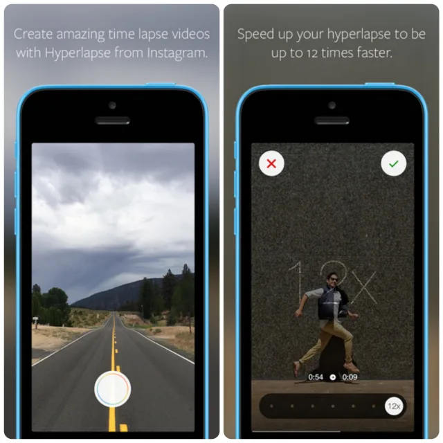 To use, Hyperlapse users just need tap to record and tap again to stop. Then you can select the playback speed, making shots up to 12 times faster. Videos are then saved to the camera roll and can be shared to Instagram or Facebook from there.