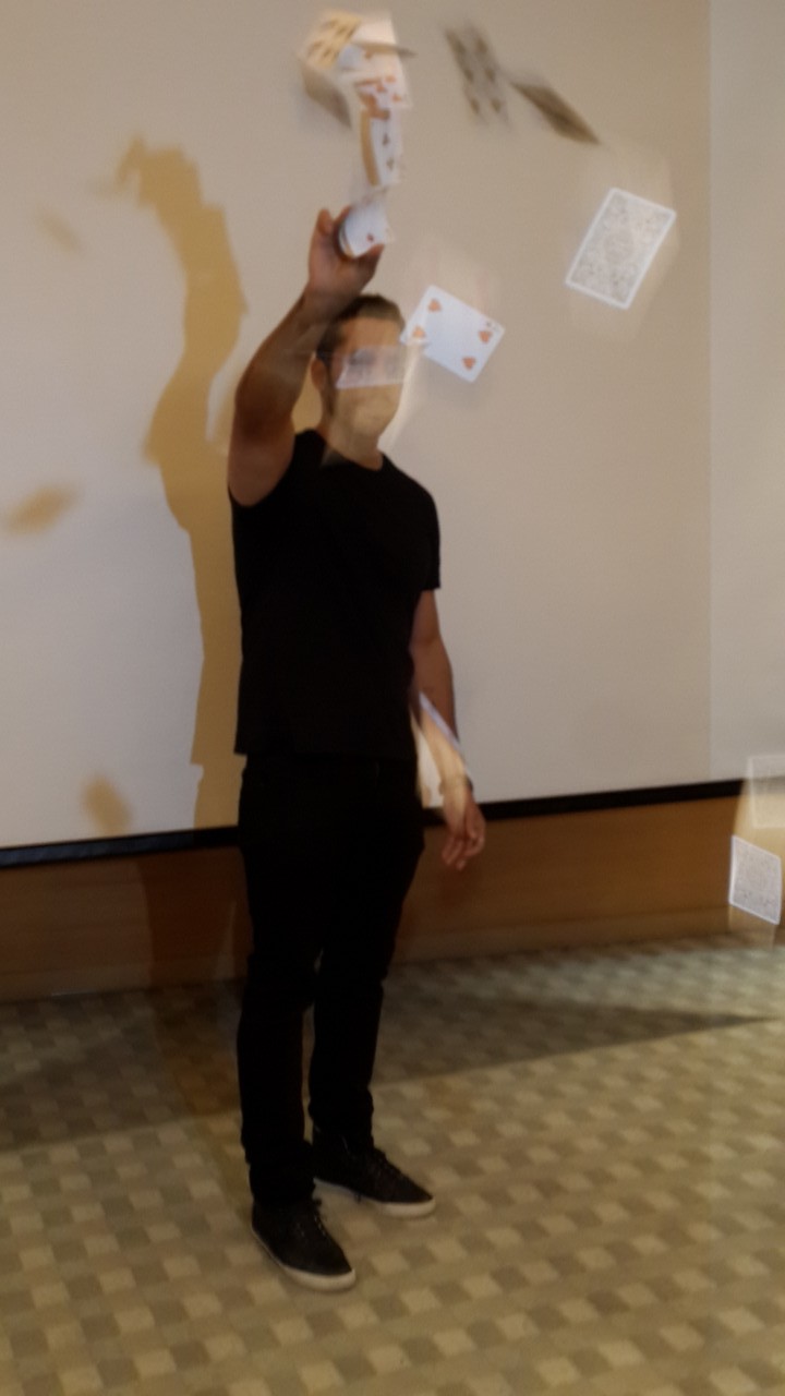 “One of the first things that I remember was when I was about 5 years old and my mother used to work multiple jobs so I would wait at the library. The librarian noticed that I always carried cards with me but I didn’t know what to do with them. So she worked me through a book of magic which was..I believe self working card tricks. And when my mother showed up, I did something very simple but reacted like she had just seen something amazing. So, I believed that I was able to do magic and that was the beginning of my love for performing. I didn’t perform for kids though because I didn’t want to be made fun of – probably smart!”