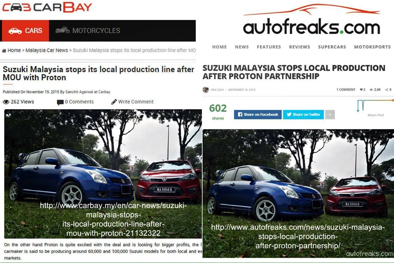 As seen in the screenshot above, this was immediately noticed by our sibling site, autofreaks. CarBay Malaysia had apparently stolen all the images from autofreaks’ Suzuki Malaysia post and used it as their own. Their only saving grace is that, when compared side by side, the articles read differently.