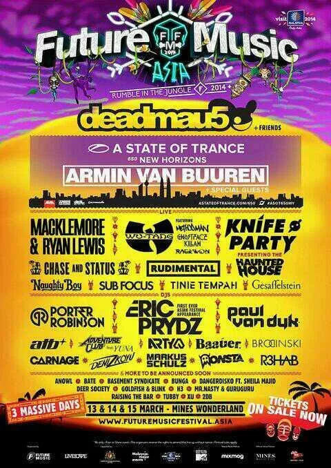 With less than a month to go to the biggest party in Malaysia, Future Music Festival Asia 2014, the Hype Malaysia team are nothing but stoked and ready to party! Revealing the biggest lineups to date, this year FMFA presents #ASOT650, Deadmau5, Deniz Koyu, Will Sparks, Pharrell Williams, Macklemore & Ryan Lewis, Rudimental, Knife Party and many more! Among some of the local heroes set to get the crowd going crazy during FMFA 2014 are Dangerdisko featuring Sheila Majid, BATE, Goldfish & Blink, DJ Bunga, RTB and more!