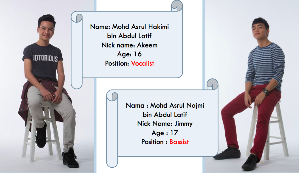 Akeem was chosen to become the vocalist of the band while his older brother plays the bass. As the son of XPDC’s guitarist Izo, Arif naturally became the guitarist of the band while Wan, the son of XPDC’s manager, became the drummer instead. Through their family connections, the band was given the opportunities to become the opening act for most of XPDC’s rock concerts and Jinbara’s new album launch in 2012.