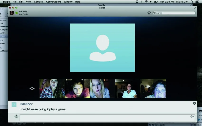 Their Skype call then gets interrupted by their friends Jess Felton (played by Renee Olstead), Adam Sewell (played by Will Peltz), and Ken Smith (played by Jacob Wysocki) and the 5 go on to have a conversation before realising that they have company.