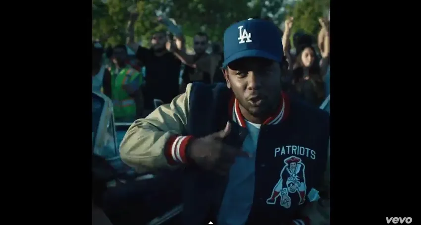 Surrounded by friends, Lamar is seen performing around his hometown, and even on top of the Compton Swap Meet in the video. He’s showing off his crew and his C-walking, looking super fly in a Dodgers hat, Patriots jacket and white Reebok sneakers as he raps through the video.