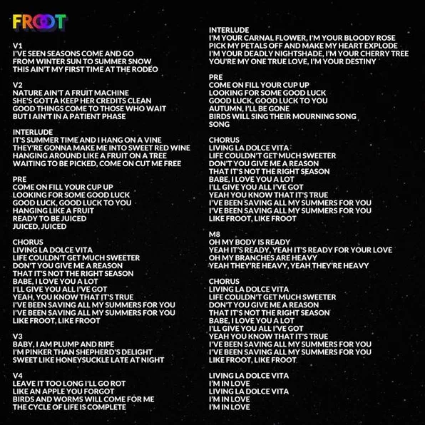 The singer has also earlier teased the fans by revealing the full lyrics to the song prior to the release of the album: