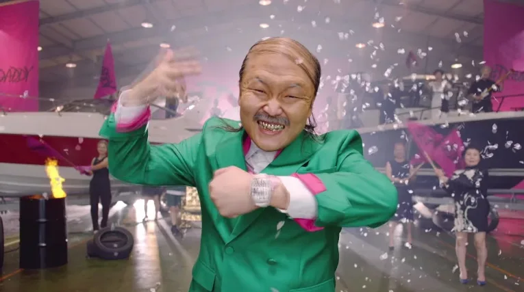 Featuring leader CL of 2NE1, the music video for “Daddy” features Psy as himself, his father, and his son. It opens with a horrifying scene where Psy’s face was superimposed onto a baby’s body. We then see Psy as a young boy flirting with his female classmates and his teacher in school. The singer also plays a playboy grandfather who mingles around with women.